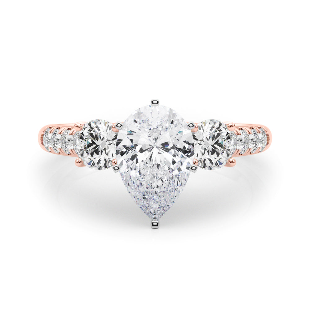 Rose gold Three-Stone Pear Cut Diamond Pavé Band with Four-Prong Setting