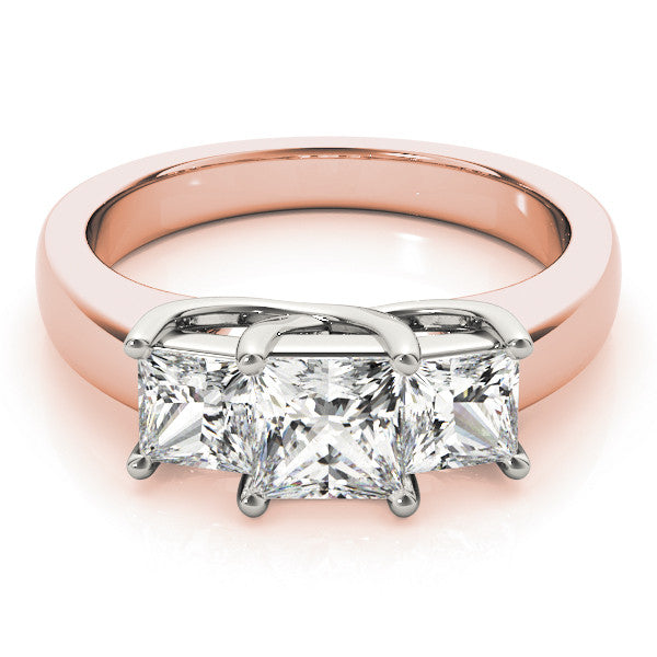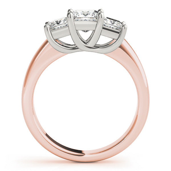 Rose gold Three-Stone Princess Cut Diamond Ring with Cathedral Band and Four-Prong Setting