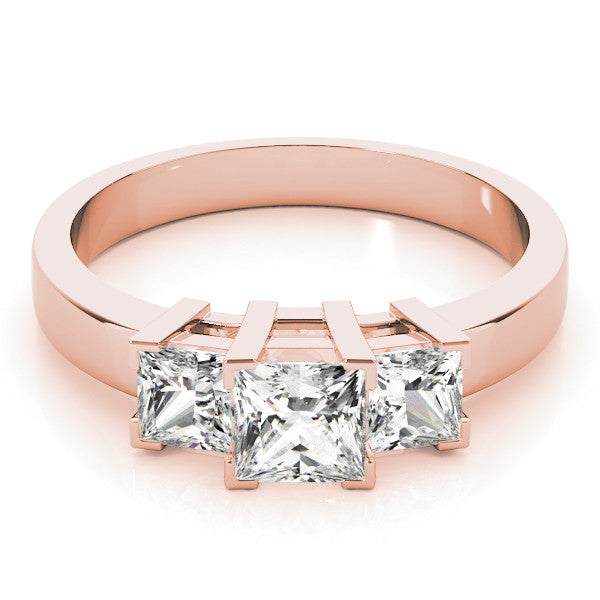 Rose gold Three-Stone Princess Cut Diamond Ring with Channel Band and Prong Setting