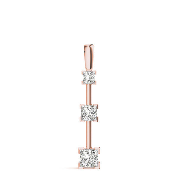 Rose gold Three-Stone Princess Cut Prong Set Pendant