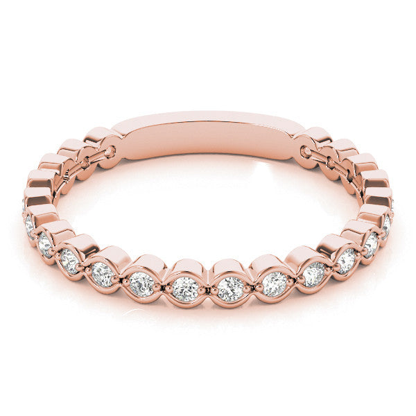 Rose gold Round Diamond Pavé Chevron Wedding Band with Prong Setting