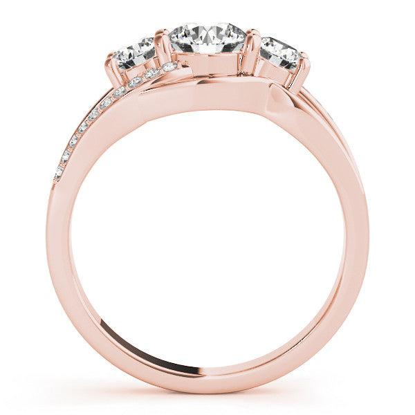 Rose gold Three-Stone Round Cut Diamond Split Shank Prong Set Ring