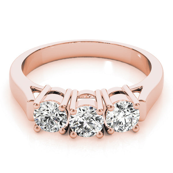 Rose gold Three-Stone Round Diamond Channel Band with Prong Setting