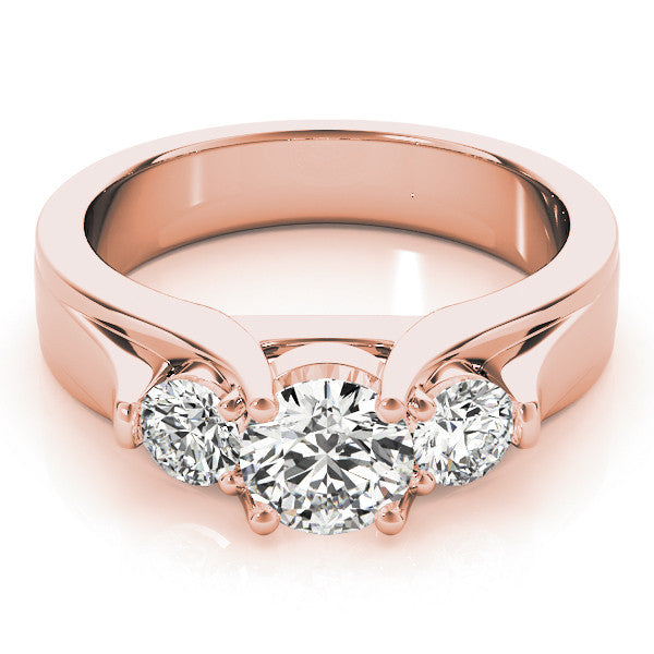 Rose gold Three-Stone Round Diamond Trellis Engagement Ring with Split Shank Band