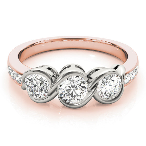 Rose gold Three-Stone Round Diamond Twist Band with Channel Setting
