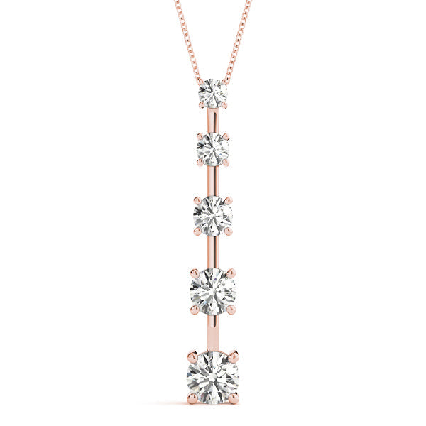 Rose gold Vertical Bar Pendant with Round Brilliant Diamonds in Prong Setting
