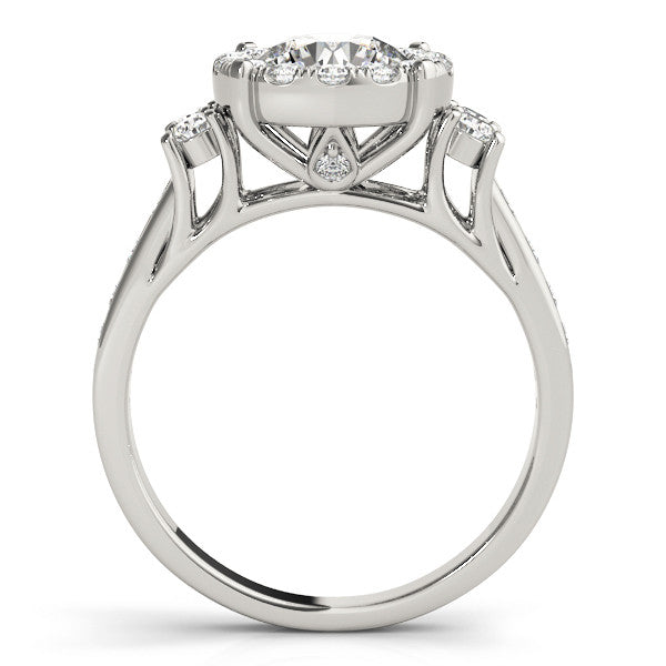 Silver Round Halo Diamond Engagement Ring with Split Shank and Four-Prong Setting