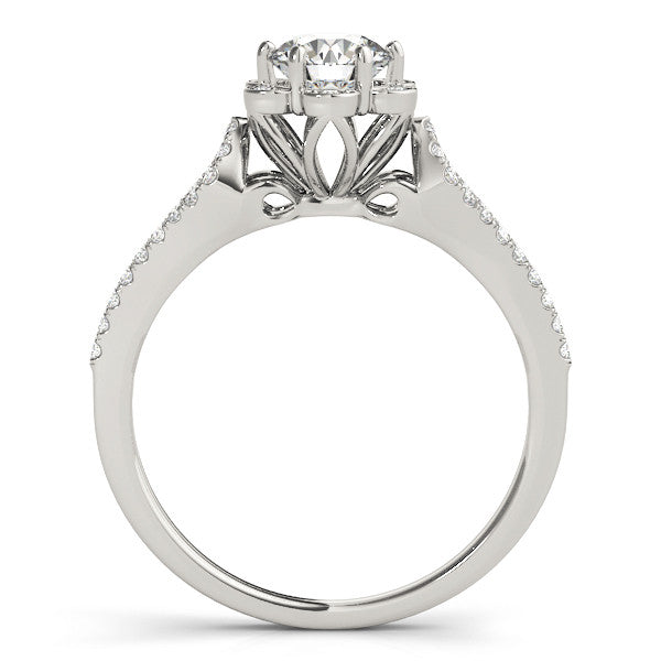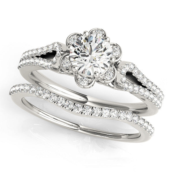 Silver Round Halo Diamond Floral Split Shank Engagement Ring