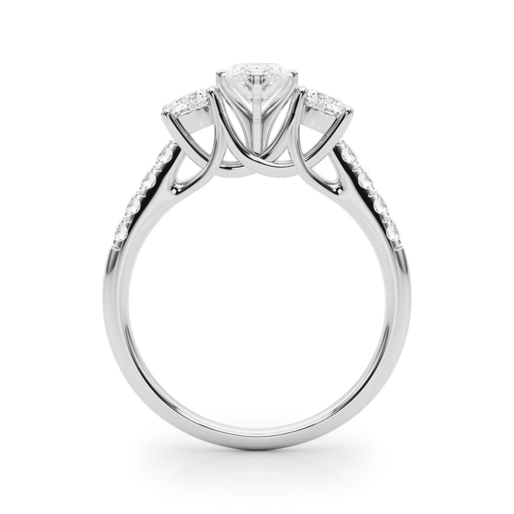 Silver Three-Stone Marquise Cut Diamond Pavé Band with Four-Prong Setting