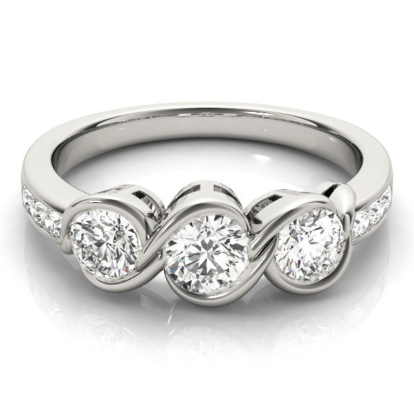 Silver Three-Stone Round Diamond Twist Band with Channel Setting