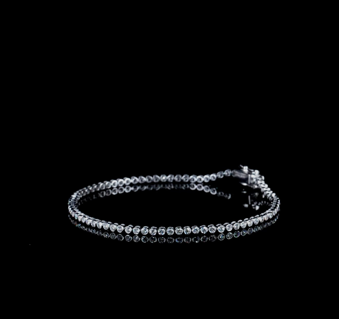 White gold Bezel Set Round Diamond Tennis Bracelet with Box Clasp