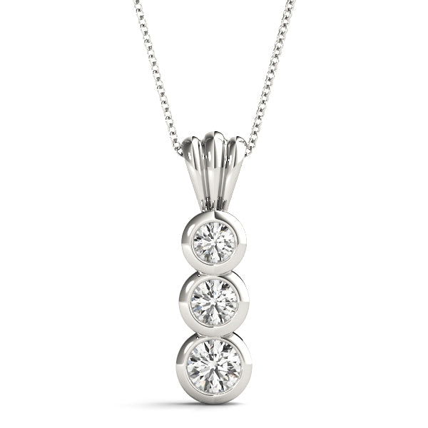 White gold Bezel Set Round Diamond Three-Stone Pendant