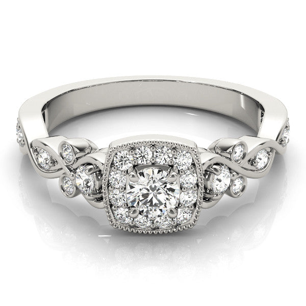 White gold Cushion Halo Round Diamond Twisted Band Four-Prong Ring