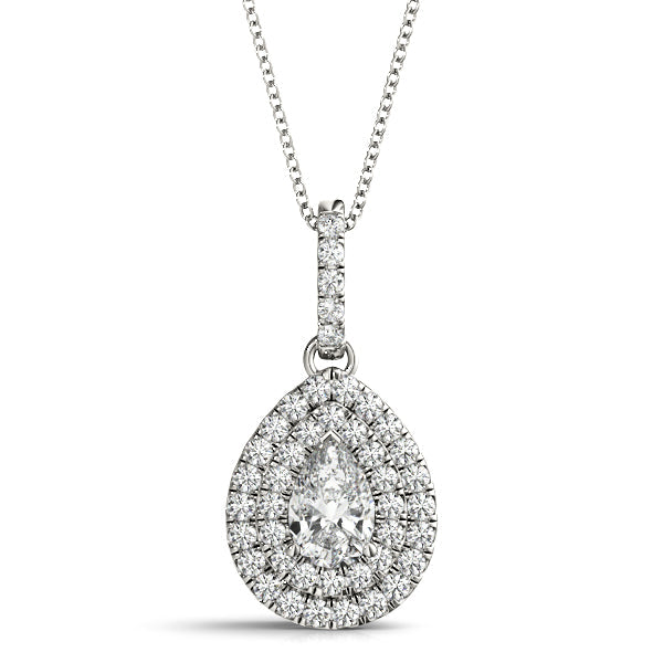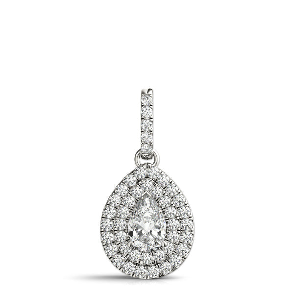 White gold Double Halo Pear Diamond Pendant with Pavé Setting