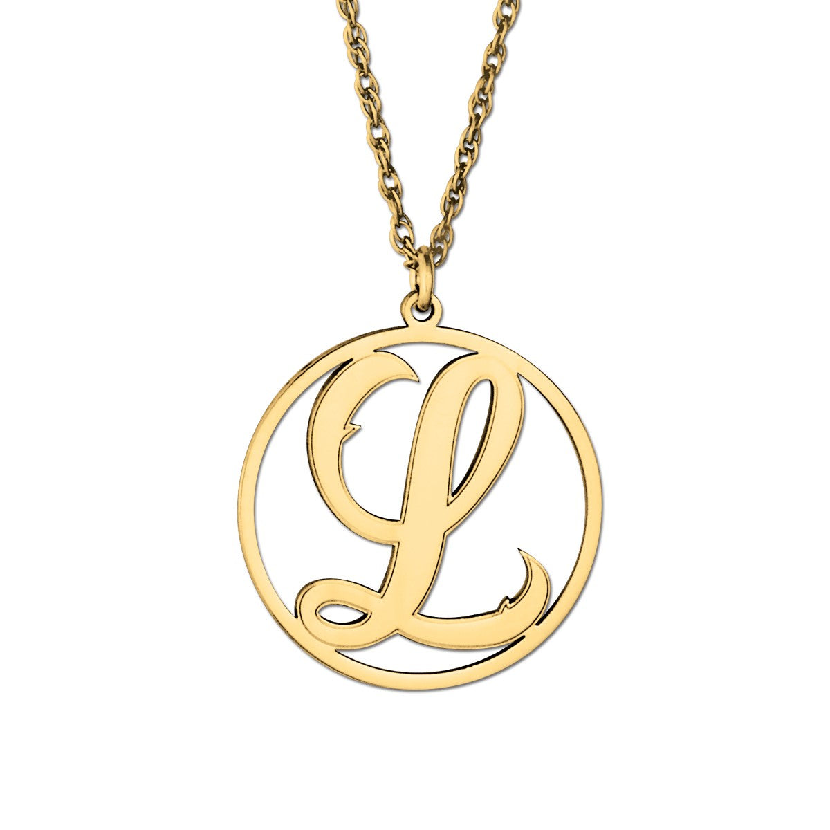 This elegant monogram circle pendant features a beautifully crafted initial 'L' enclosed within a round frame, available in both gold and silver finishes. The pendant is suspended from a matching chain, adding a touch of sophistication to any outfit. Ideal for personalizing your style, this pendant makes a thoughtful gift for loved ones or a chic addition to your own jewelry collection.