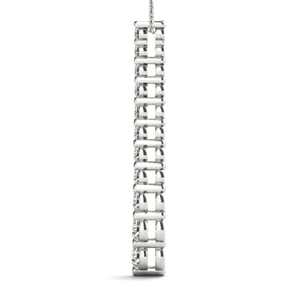 White gold Graduated Round Diamond Curved Bar Pendant with Prong Setting