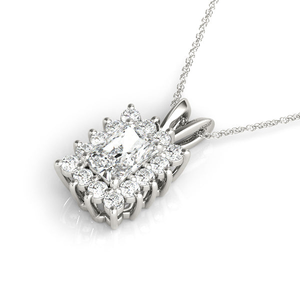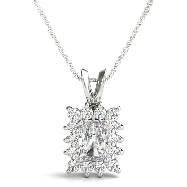 White gold Halo Radiant Cut Diamond Pendant with Prong Setting