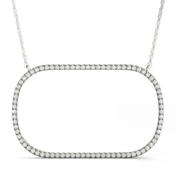 This exquisite pendant features an elegant oval shape adorned with a stunning pavé setting of sparkling round diamonds. Each diamond is meticulously set with prongs, creating a dazzling frame that captures and reflects light beautifully. The pendant's minimalist design exudes sophistication and grace, making it a perfect accessory for any occasion. Crafted with precision and attention to detail, this pendant is a timeless piece that adds a touch of glamour to any ensemble.