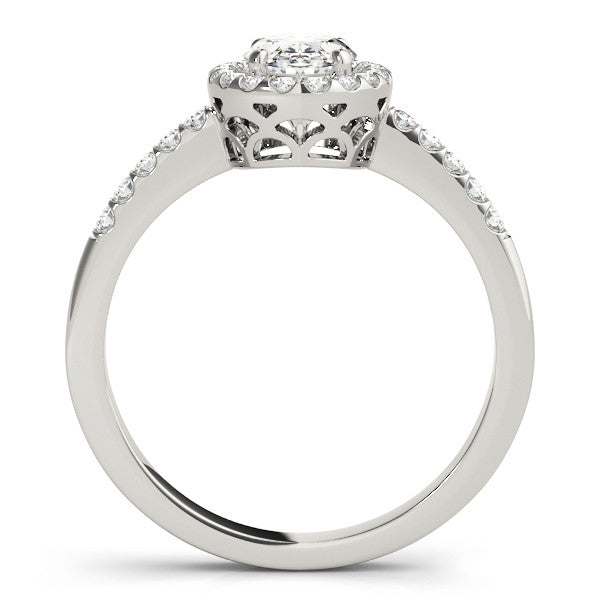 White gold Oval Halo Diamond Engagement Ring with Pavé Band and Four-Prong Setting