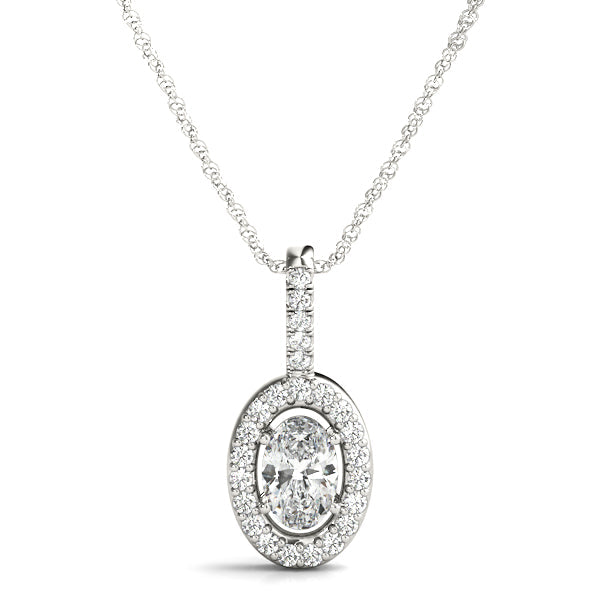 White gold Oval Halo Diamond Pendant with Pavé Setting