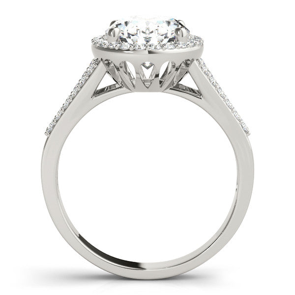 White gold Oval Halo Split Shank Diamond Ring with Four-Prong Setting