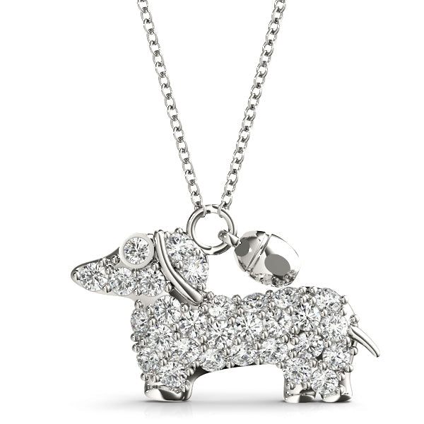 White gold Pavé Round Diamond Prong-Set Dachshund Pendant