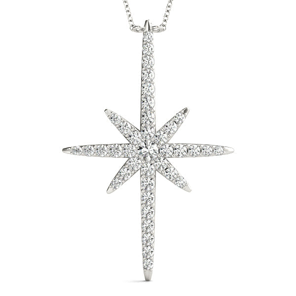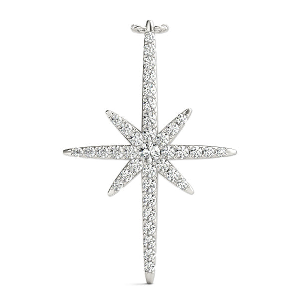 White gold Pavé Round Diamond Starburst Pendant with Prong Setting
