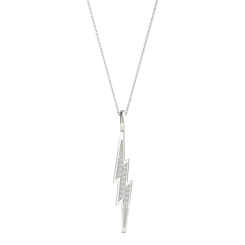 White gold Pavé Set Lightning Bolt Pendant with Round Cut Stones