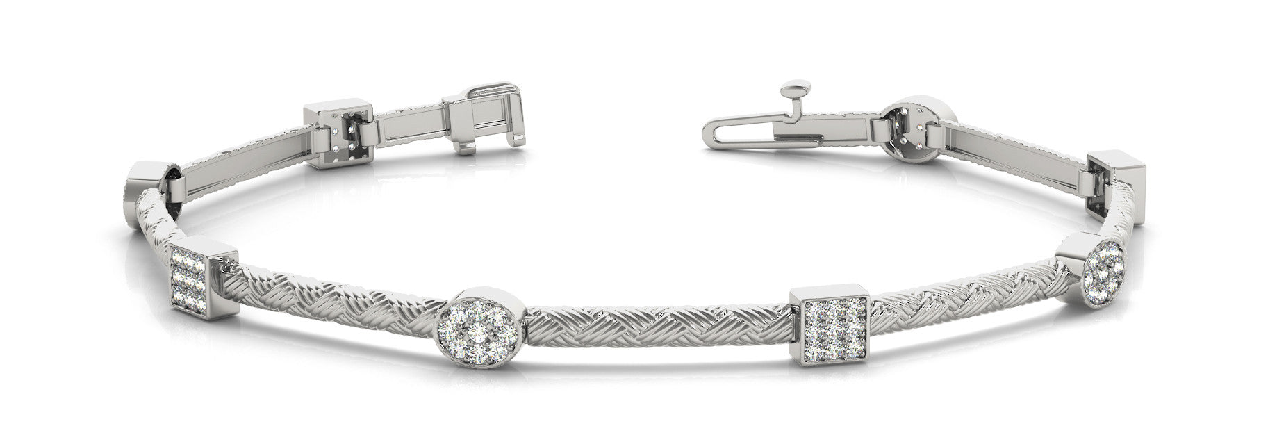White gold Pavé Round and Square Diamond Braided Bracelet with Box Clasp