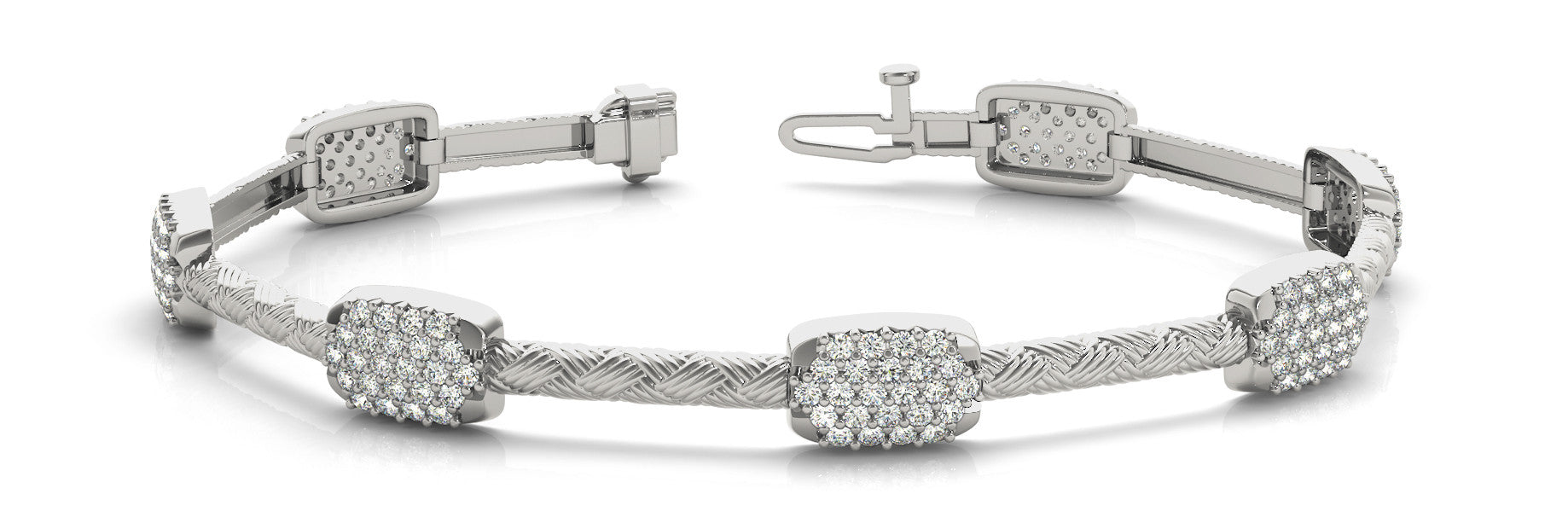 This exquisite bracelet features a stunning pavé setting of round diamonds, elegantly arranged to create a dazzling display of brilliance. The diamonds are set in a secure box clasp, ensuring both style and safety. The bracelet's band is crafted in a sophisticated cable design, adding a touch of texture and elegance to the piece. Perfect for any occasion, this bracelet is a timeless addition to any jewelry collection, offering both luxury and versatility.
