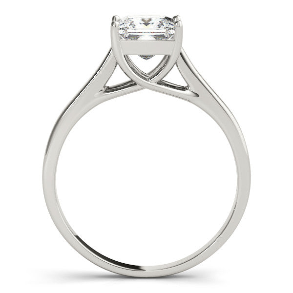White gold Princess Cut Solitaire Engagement Ring with Tapered Band and Four-Prong Setting
