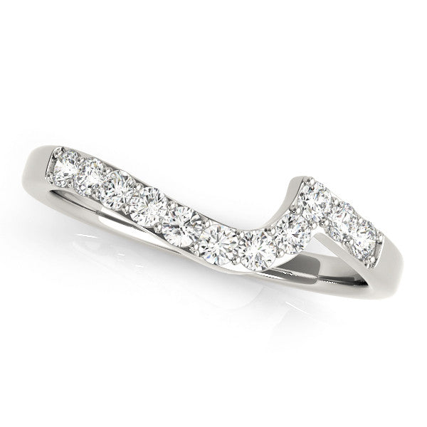 White gold Round Diamond V-Shaped Pavé Curved Band