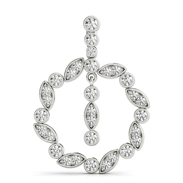 This exquisite pendant features a captivating design with alternating round and marquise cut diamonds, each meticulously set in a milgrain halo setting. The round stones are securely held in place with a classic prong setting, enhancing their brilliance and sparkle. The pendant's circular arrangement creates a harmonious balance, making it a timeless piece that adds elegance and sophistication to any ensemble. Perfect for special occasions or adding a touch of glamour to everyday wear, this pendant is a testament to fine craftsmanship and luxurious style.