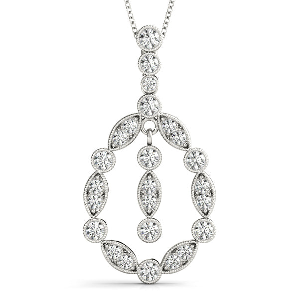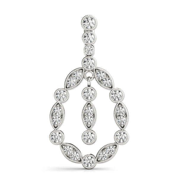 White gold Round and Marquise Diamond Milgrain Halo Pendant