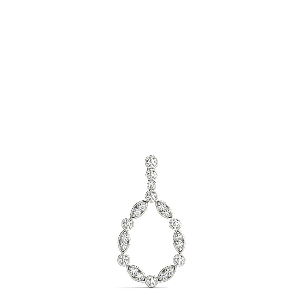 White gold Round and Marquise Diamond Milgrain Prong Pendant