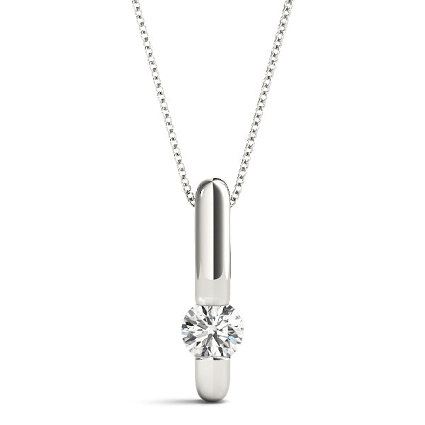 This elegant pendant showcases a stunning round diamond securely held in a sleek bezel setting, offering a modern and sophisticated look. The stone is expertly set to maximize its brilliance while ensuring durability, making it perfect for everyday wear or special occasions. The minimalist design highlights the diamond's natural beauty, making it a timeless addition to any jewelry collection.