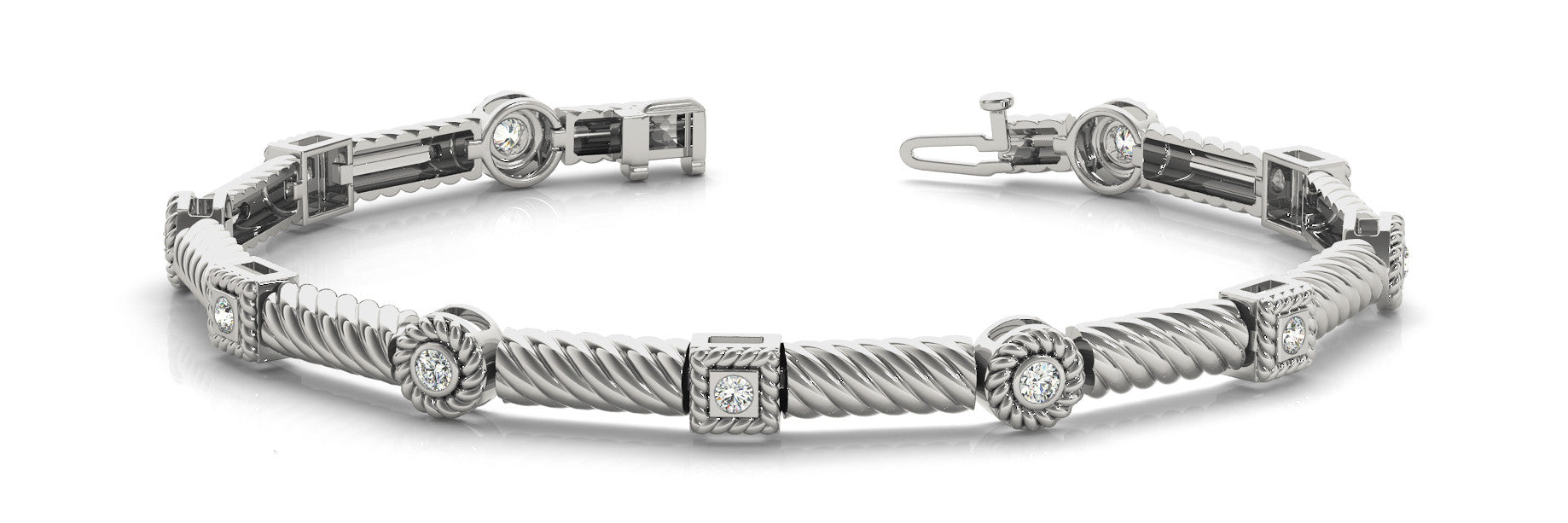 White gold Round Bezel Set Diamond Rope Bracelet with Box Clasp