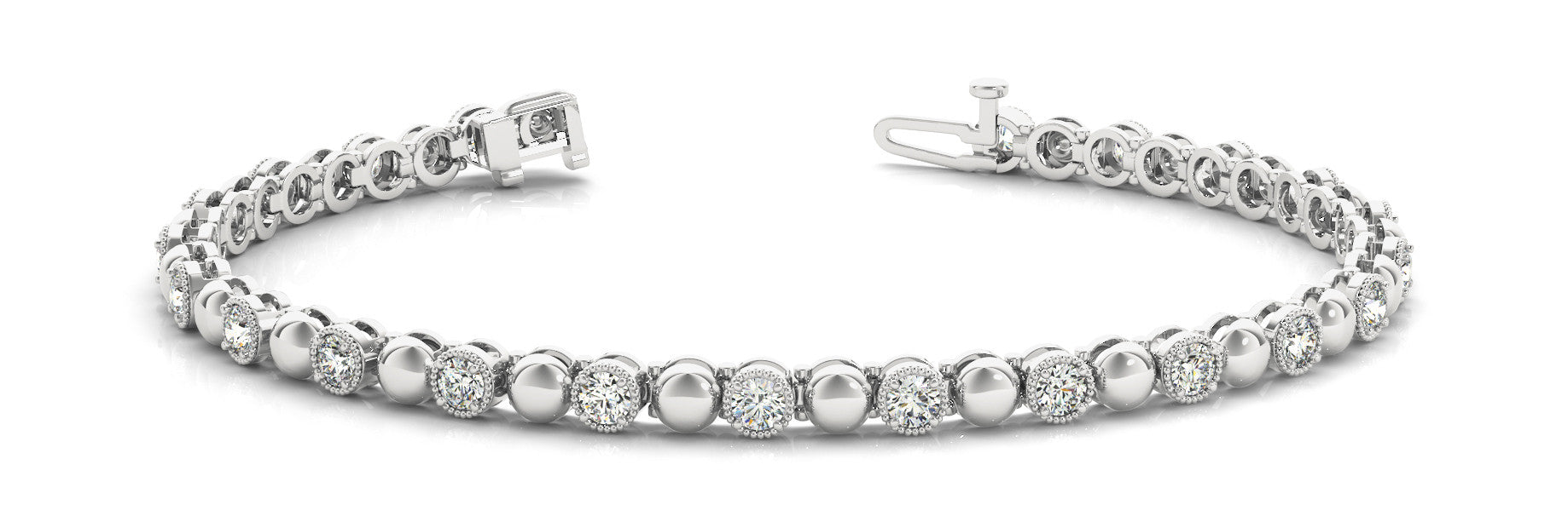 White gold Round Bezel-Set Diamond Tennis Bracelet with Milgrain Prong Setting