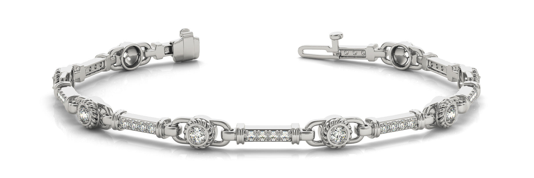 White gold Round Bezel-Set Diamond Tennis Bracelet with Pave Band