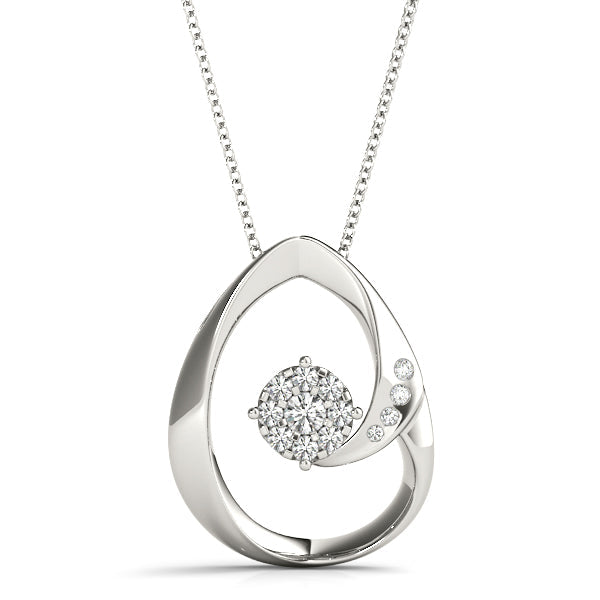White gold Round Cluster Diamond Prong-Set Teardrop Pendant
