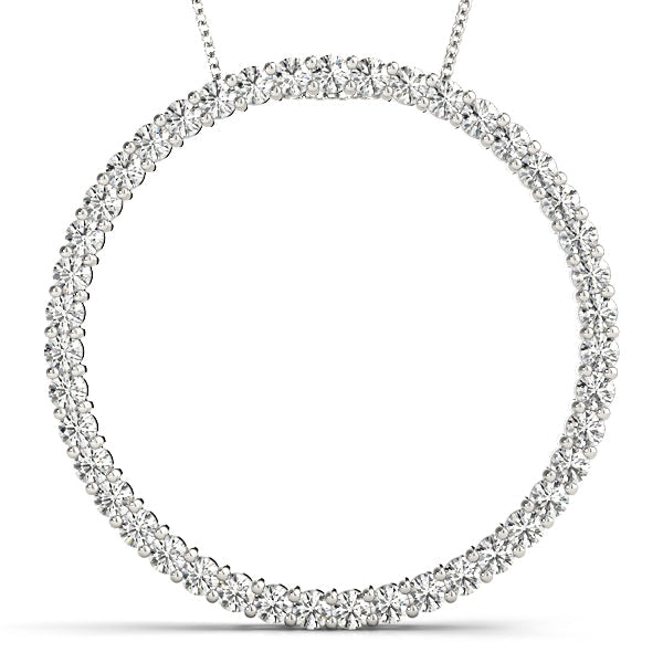 This exquisite pendant features a continuous circle of dazzling round cut diamonds, each securely nestled in a classic prong setting. The eternity design symbolizes everlasting love and sophistication, making it a timeless addition to any jewelry collection. Crafted with meticulous attention to detail, this pendant offers a radiant sparkle that captures the light from every angle, perfect for adding a touch of elegance to any ensemble.
