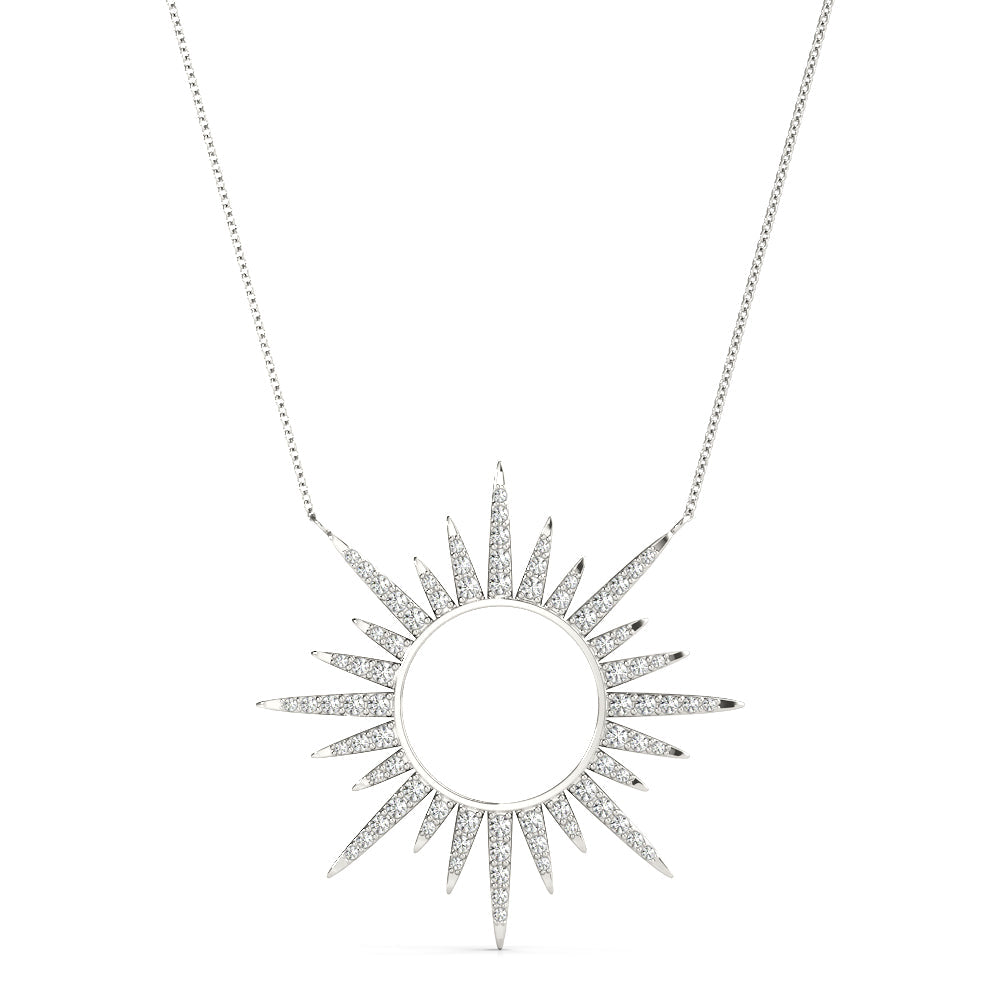 White gold Round Cut Diamond Sunburst Pendant with Pavé Setting
