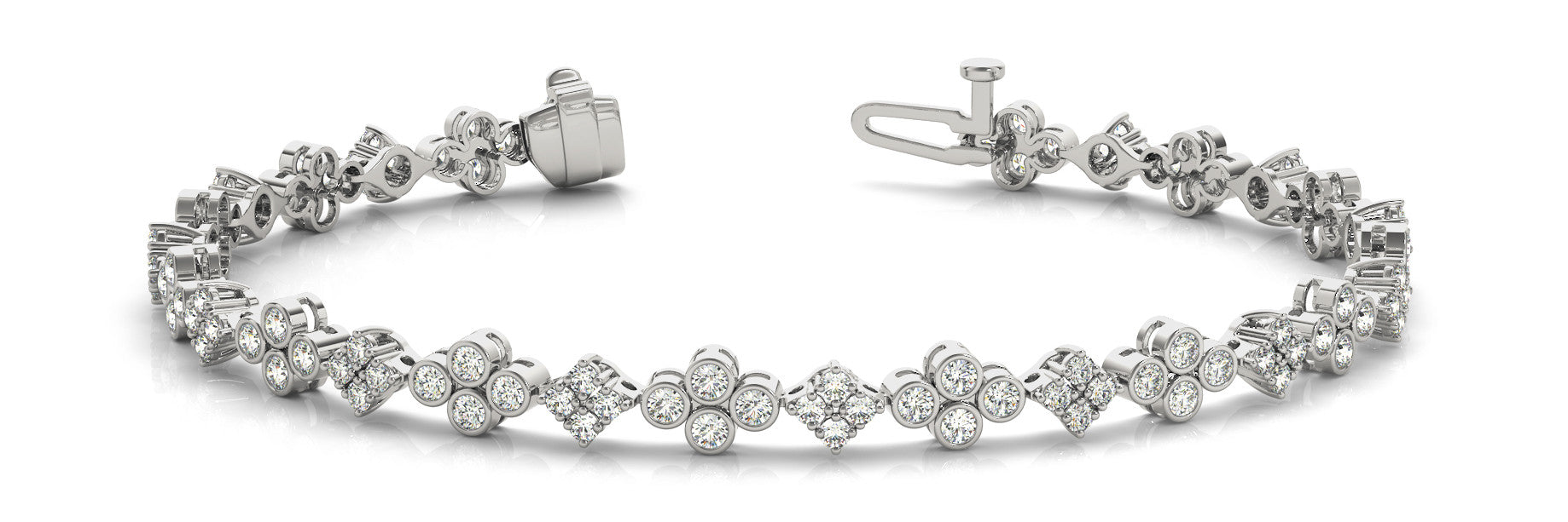 White gold Round Diamond Cluster Tennis Bracelet with Bezel Setting and Four-Prong Clasp