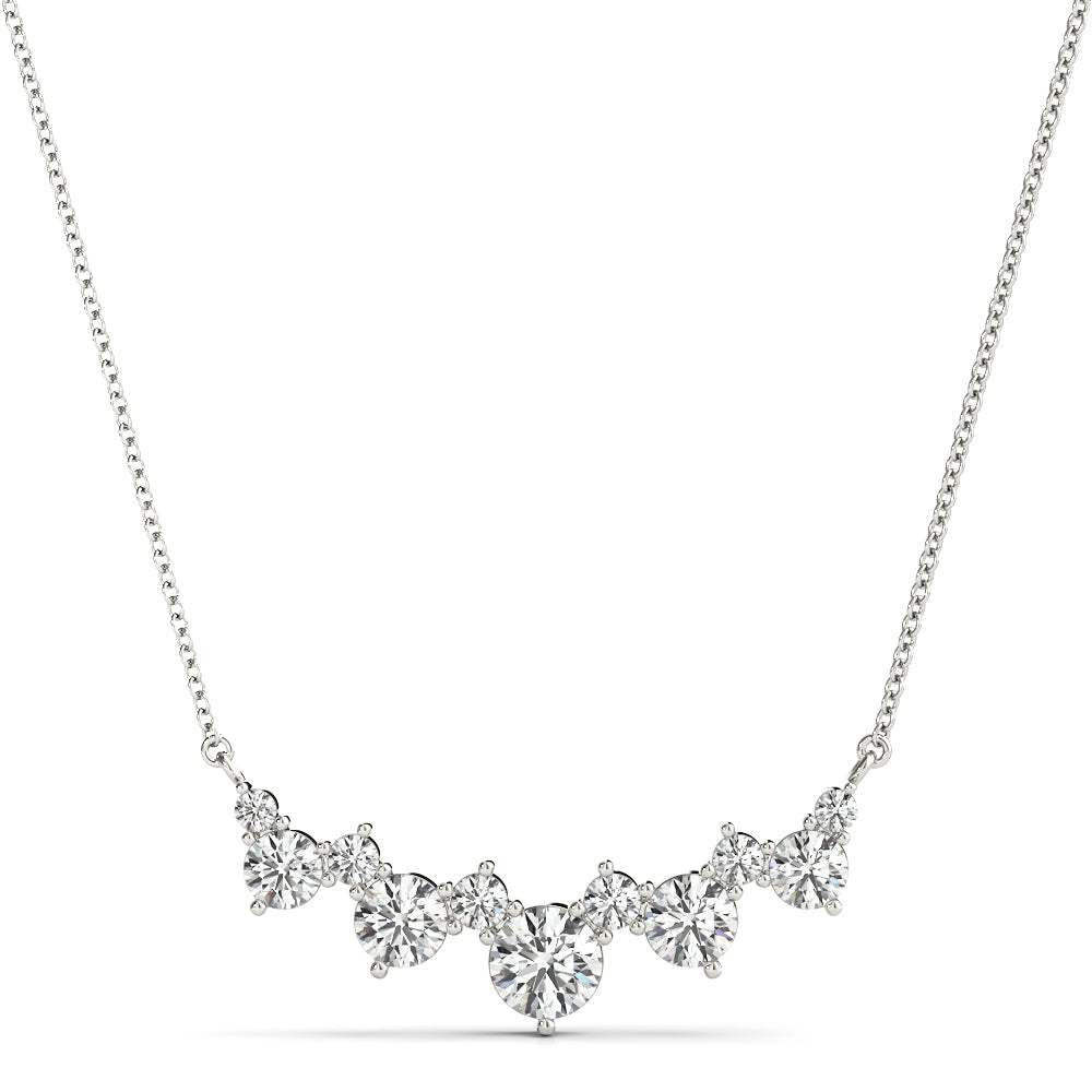 This exquisite necklace features a stunning array of round brilliant-cut diamonds, gracefully arranged in a graduated fashion to form a captivating V-shape. Each diamond is securely held in place by elegant V-prong settings, allowing maximum light to enhance their natural brilliance. The pendant is suspended from a delicate chain, offering a timeless and sophisticated look that is perfect for any occasion. Crafted with precision and attention to detail, this necklace is a testament to luxury and elegance.