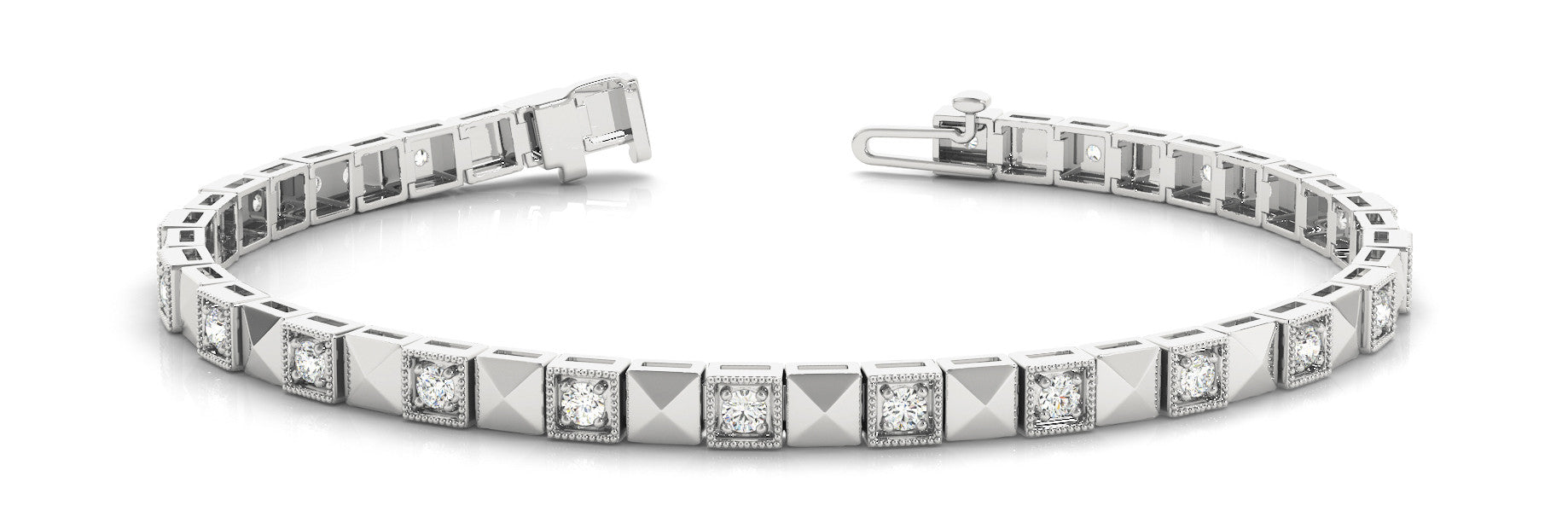 White gold Round Diamond Pyramid Link Tennis Bracelet with Bezel Setting