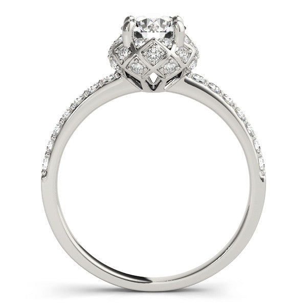 White gold Round Halo Diamond Pave Band with Prong Setting
