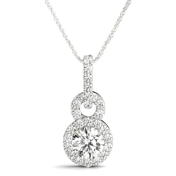 White gold Round Halo Diamond Pendant with Pavé Setting