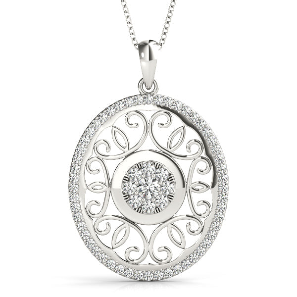 White gold Round Halo Filigree Pendant with Pavé Setting