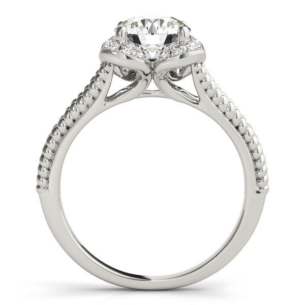 White gold Round Halo Milgrain Solitaire with Split Shank and Four-Prong Setting