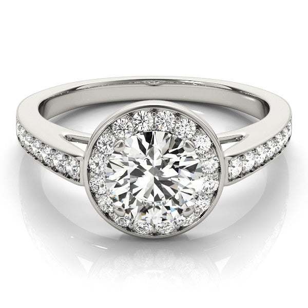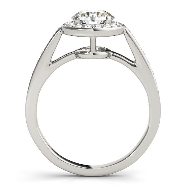 White gold Round Halo Pavé Diamond Engagement Ring with Bezel Setting